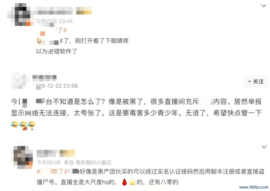 12月22日22时傍边,国内某直播平台遭逢黑灰产大面积蛮横挫折。挫折者哄骗大皆僵尸账号开设直播间,播放违法本色,有的直播间单场不雅看量甚而面对10万东说念主,关系话题在外交媒体上取得大皆缓和和商讨。
